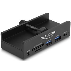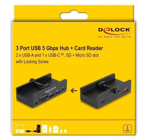 Delock Externí 3 portový rozbočovač USB 5 Gbps, 2 x USB Typ-A, 1 x USB Type-C™ a čtečka karet se 2 sloty
