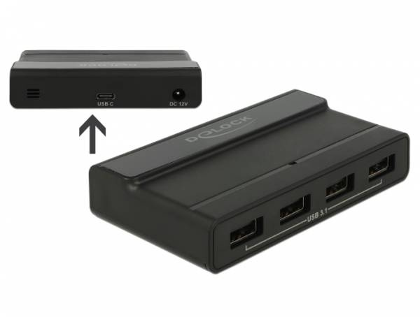 Tento USB Hub od Delocku může být připojen k počítači přes rozhraní USB Typ-A. Rozšiřuje počítače o čtyři konektory USB Typ-A.