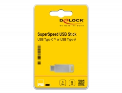 Delock Flash disk USB 3.2 Gen 1, USB-C™ + Typ-A, 64 GB - kovový kryt