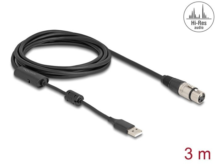 Delock Kabel audio převodníku s vysokým rozlišením, ze třípinového XLR analogový na USB Typ-A digitální, 3 m