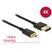 Tento premium kabel High Speed HDMI s Ethernetem od Delocku umožňuje propojení mezi fotoaparátem nebo tabletem s rozhraním Micro HDMI a monitorem nebo TV s portem HDMI-A. Kabel vyniká svým štíhlým průměrem a krátkými konektory. Trojité stínění kabelu kombinuje rychlý přenos dat stejně jako audio / video a připojení Ethernetu. Vzhledem k podpoře dosáhnout maximální šířku pásma 18 Gb/s, 4K obsahuje (maximální obnovovací kmitočet 60 Hz), 3D obsahuje pro 4K rozlišení (maximální obnovovací kmitočet 24 Hz) a pro 21:9 poměr stran v kině lze nyní zobrazit. Kabel umožňuje současný přenos dvou video kanálů pro zobrazení video steamů pro dva uživatele na jedné obrazovce, stejně jako simultánní přenos až čtyř zvukových kanálů. Kvalita audio přenosů je podstatně zlepšena vzorkovací frekvencí až do 1536 kHz.