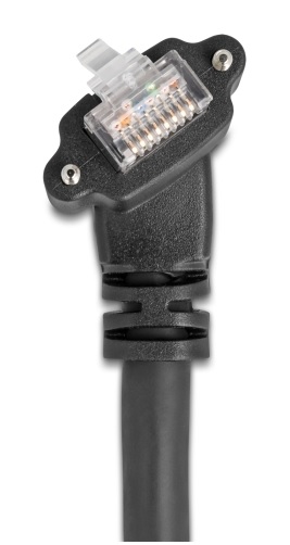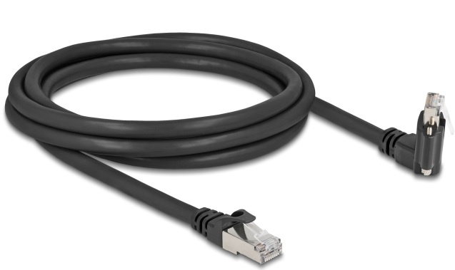 Delock Kabel kamery GigE se zástrčkou RJ45, pootočený o 45° a pravoúhlý 90°, se šrouby, na zástrčku RJ45, Cat.6, S/FTP