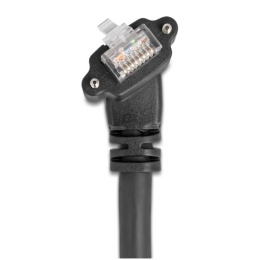 Zástrčka RJ45 je vybavena dvěma šrouby M2 a je kompatibilní s připojením kamery GigE. To znamená, že kabel lze používat k průmyslovému zpracování obrazu, přičemž šroubovací konektory zajišťují pevné a bezpečné spojení i pro případ pohybu a vibrací.