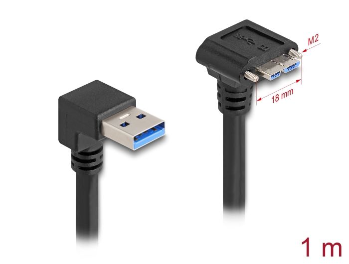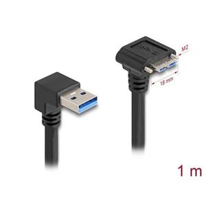 Delock Kabel s rozhraním USB 5 Gbps, se zástrčkou USB Typ-A, pravoúhlou dolů 90°, na zástrčku USB Micro-B, se šrouby