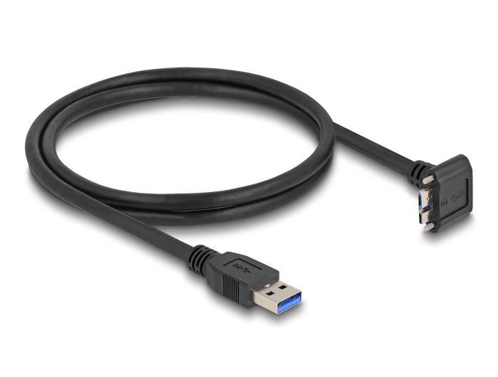 Delock Kabel s rozhraním USB 5 Gbps, se zástrčkou USB Typ-A, přímá, na zástrčku USB Micro-B, se šrouby, pravoúhlá nahoru