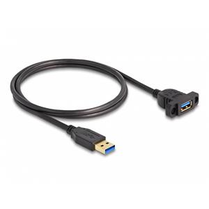 Delock Kabel SuperSpeed USB 5 Gbps (USB 3.2 Gen 1) ze zástrčky USB Typu-A na zásuvku, 1 m, panelová montáž, černý