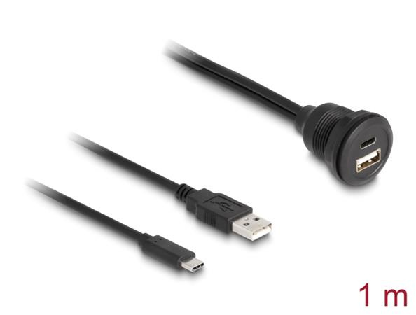 Delock Kabel USB 2.0, ze zástrčky USB Typ-A a zástrčky USB Type-C™ na zásuvku USB Typ-A a zásuvku USB Type-C™, k vestavění, 1 m