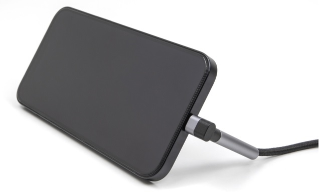 Speciální funkcí tohoto kabelu je funkce integrovaného stojanu na straně pravoúhlého konektoru USB Type-C™. Prodloužení krytu konektoru umožňuje přestavit připojený smartphon při nabíjení do mírně sklopené polohy.