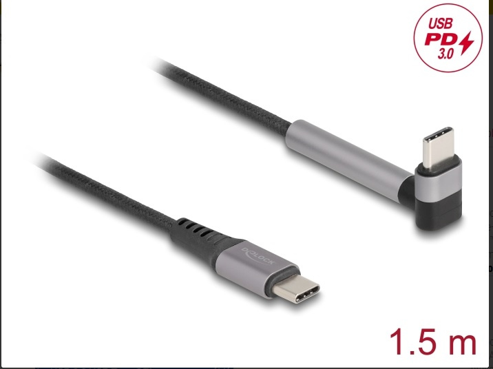 Delock Kabel USB 2.0 ze zástrčky USB Type-C™ na zástrčku, pravoúhlý, s funkcí stojanu, PD 3.0, 60 W, 1,5 m