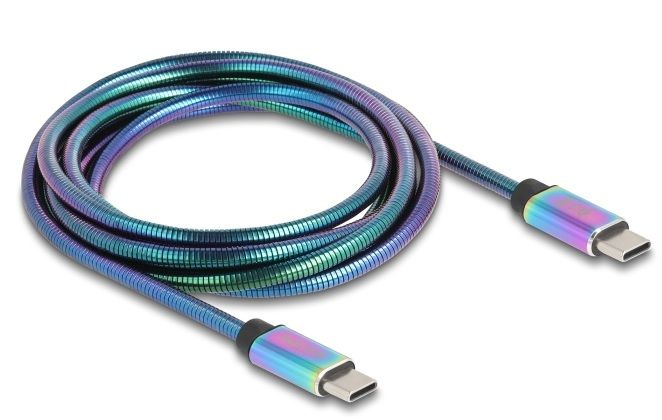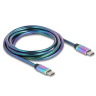 Delock Kabel USB 2.0 ze zástrčky USB Type-C™ na zástrčku, s duhovým kovovým pláštěm, PD 3.0, 60 W, 2 m