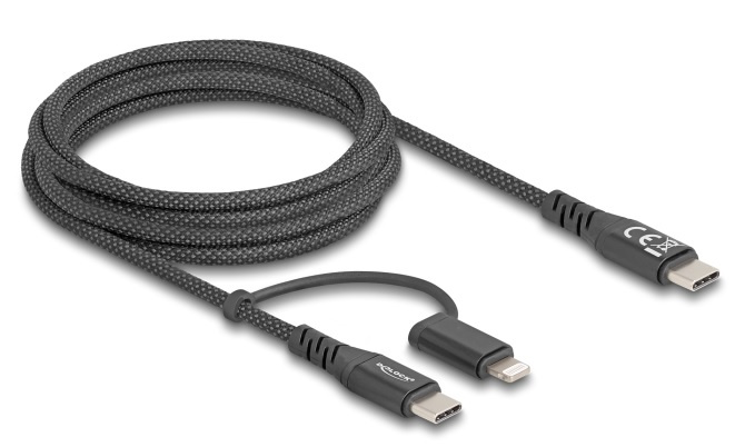 Delock Kabel USB 2 v 1, z rozhraní USB Type-C™ na USB Type-C™ / Lightning™, pro iPhone™ a iPad™, 2 m, MFi, 60 W