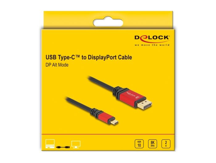 Delock Kabel USB Type-C™ na DisplayPort (DP Alt Mód) 8K 30 Hz s funkcí HDR 2 m červená