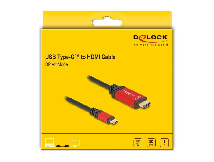 Delock Kabel USB Type-C™ na HDMI (DP Alt Mód) 8K 60 Hz s funkcí HDR 1 m červená