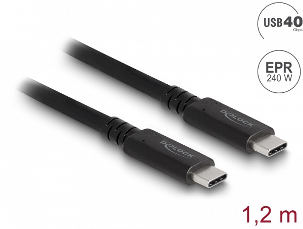 Delock Kabel USB4™ 40 Gbps koaxial 1,2 m USB PD 3.1 Extended Power Range 240 W