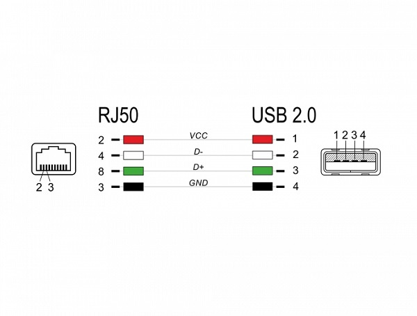 Tento kabel značky Delock lze použít například k připojení čtečky čárových kódů se zásuvkou RJ50 k systému.