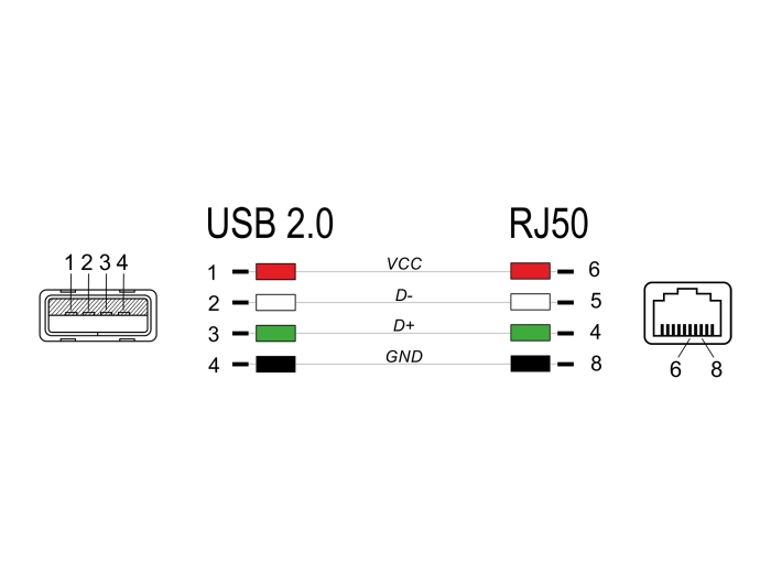 Tento kabel značky Delock lze použít například k připojení čtečky čárových kódů se zásuvkou RJ50 k systému.
