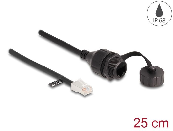 Delock Kabel ze zástrčkového konektoru RJ45 na zásuvkový konektor RJ45 pro vestavné aplikace, s těsnicí krytkou
