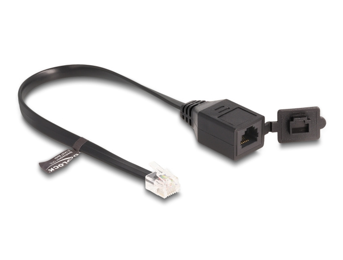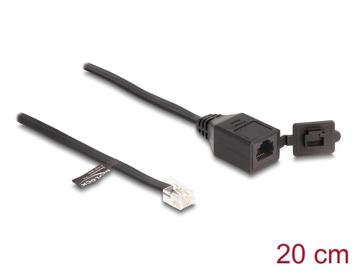 Delock Kabel ze zástrčky RJ12 na zásuvku RJ12 s ochrannou krytkou, 20 cm, černý