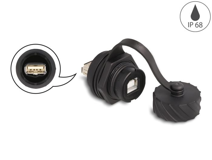 Delock Kabelový konektor USB 2.0 Typ-B ze zásuvky na zásuvku USB 2.0 Typ-A k instalaci s bajonetem ochrannou krytkou