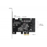 Tato karta PCIe umožňuje rozšíření externích portů USB v přední části počítače nebo na slotové konzoli pomocí přídavných kabelů, slotových konzolí nebo čelních panelů.