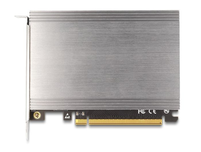 Tato PCI Express karta od Delocku rozšiřije PC o čtyři sloty M.2. Lze připojit až čtyři SSD M.2 ve formátu 2280, 2260, 2242 a 2230. Díky velkému chladiči je zaručeno dostatečné chlazení modulů M.2.