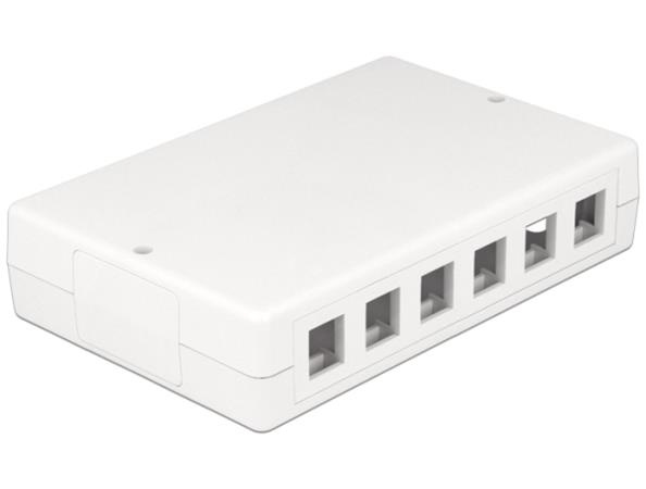 This empty box by Delock can be used as a junction box on the wall or in enclosures. With its standardized dimensions, it is suitable for easy snap-in mounting of six or twelve Keystone modules.