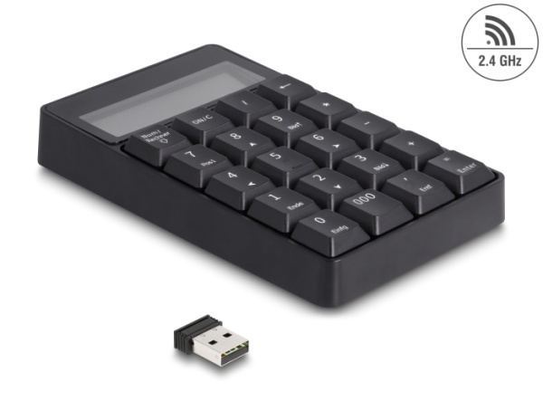 Delock Klávesnice s funkcí kalkulačky 2 v 1 s rozhraním USB Typu-A, 2,4 GHz, bezdrátová, černá