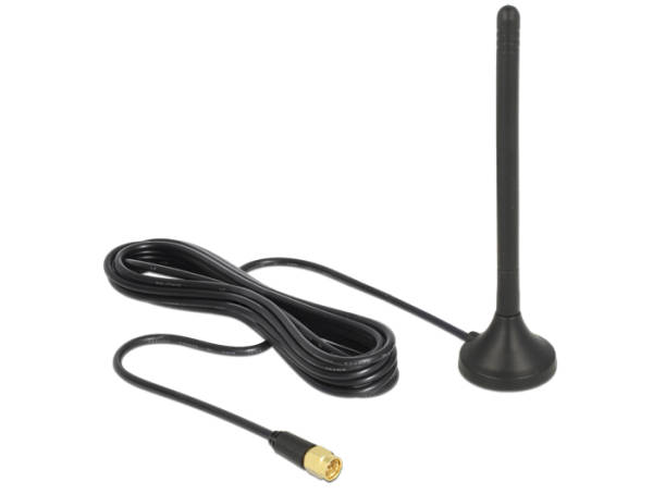 Delock LTE / GSM / UMTS Anténa SMA samec 2,5 dBi všesměrová pevná s magnetickou základnou a připojovací kabel (RG-174, 3 m)