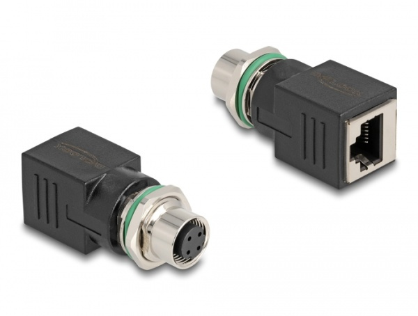 Delock M12 Adaptér, ze čtyřpinové D-kódované zástrčky na konektor RJ45 přímý