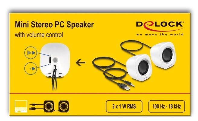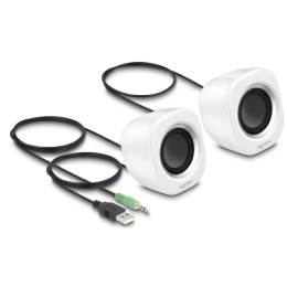 Delock Miniaturní stereofonní počítačový reproduktor se stereofonním zástrčkovým konektorem průměru 3,5 mm a napájením