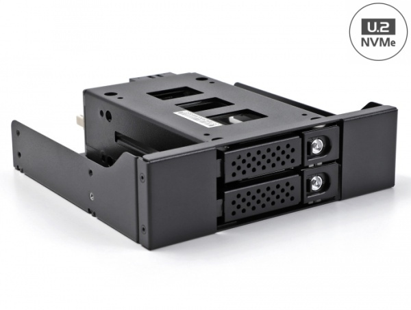 Delock Mobilní přihrádka s úzkou zásuvkou pro 2 x SSD NVMe U.2 rozměru 2.5” s rámem rozměru 5.25”