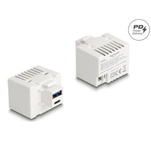 Delock Modul Keystone s nabíjecími porty USB Typ-A a USB Type-C™, PD 20 W, bílý