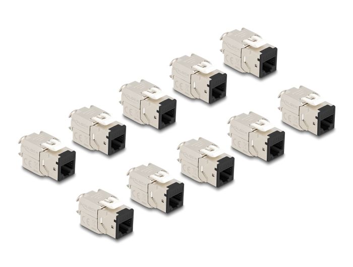 Tyto moduly Keystone značky Delock lze používat k připojování síťových kabelů a jsou vhodné k snadné montáži zacvaknutím do různých držáků, jako jsou například spojovací pole Keystone, patch panely nebo povrchově montované krabice.