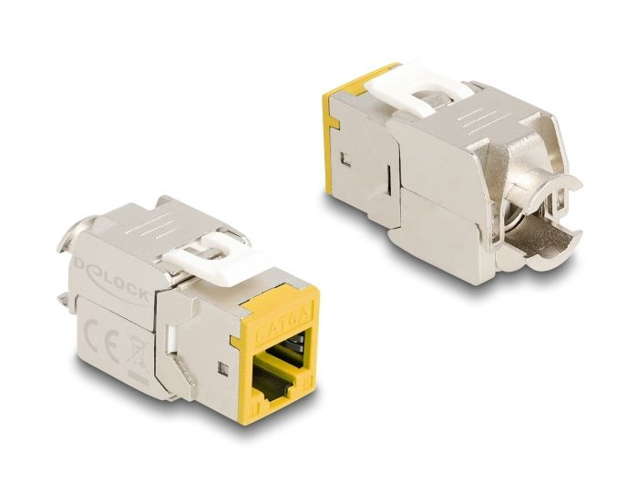Delock Modul Keystone ze zásuvkového konektoru RJ45 na LSA Cat.6A, beznástrojový, žlutá, sada 10 kusů