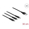 Delock Nabíjecí kabel USB 3 v 1 pro Lightning™ / Micro USB / USB Type-C™, 30 cm černá