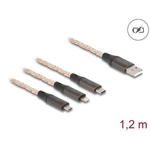 Delock Nabíjecí kabel USB RGB 3 v 1 z Typ-A na Lightning™ / Micro USB / USB Type-C™, 1,20 m
