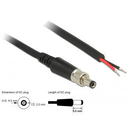 Delock Napájecí kabel DC 5,5 x 2,5 x 9,5 mm šroubovací s odhalenými konci drátů 95 cm