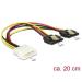 Delock Napájecí kabel Molex 4 pin samec > 2 x SATA 15 pin samice kovová spona 20 cm