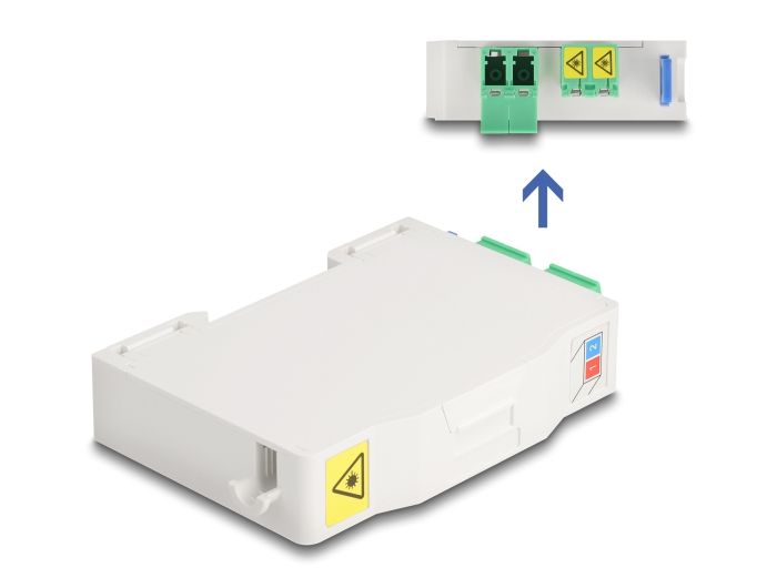 Delock Optická spojovací krabice na lištu DIN s držákem spojů a 2 x spojkami LC Duplex