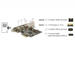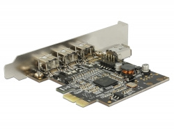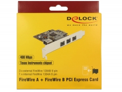 Tato PCI Express karta od Delocku rozšiřuje PC o tři externí FireWire 800 porty a jeden interní FireWire 400 port. Ke kartě pak mohou být připojena různá zařízení s portem FireWire, jako jsou externí disky, digitální kamery a fotoaparáty, adaptéry apod.