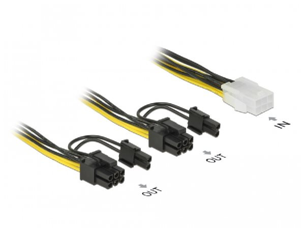 Tento Delock napájecí kabel může být použit pro napájení PCI Express karet, které vyžadují vysokou spotřebu energie a mají dva 8 pin nebo 6 pin napájecí konektor např. grafické karty. Na obou 8 pin portech samce můžete odstranit dva piny, takže můžete získat 6 pin rozhraní PCIe.