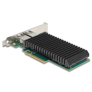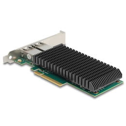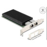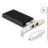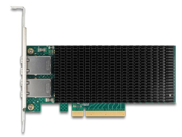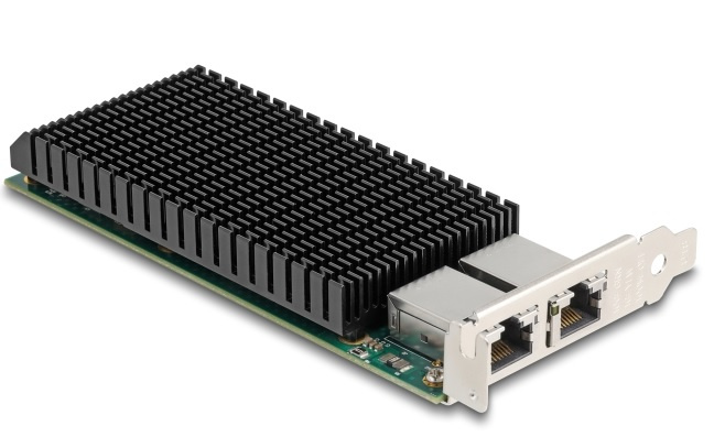 Delock PCI Express karta nabízí dva síťové porty s přenosovou rychlostí data ž do 10 Gbps s běžným Cat.6 nebo Cat.6A měděným kabelem.