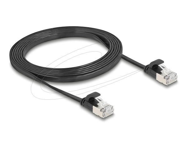 Delock Plochý patch kabel RJ45 zástrčka na zástrčku Cat.6A U/FTP 2 m, černý