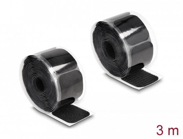 Delock Podložka se suchým zipem na roli, samolepící, 45 x 50 mm - délka 3 m, černá