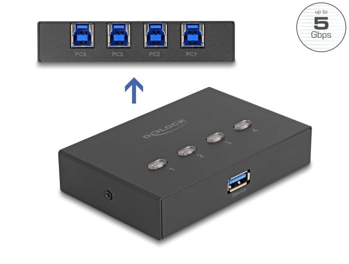 Delock Přepínač USB 5 Gbps, 4 PC na 1 zařízení