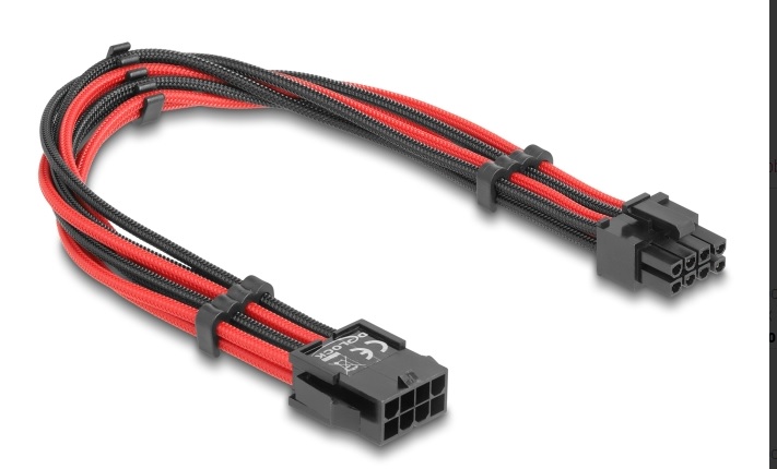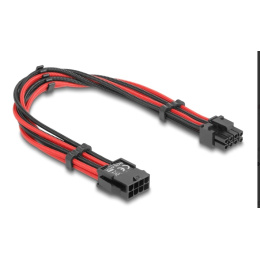 Delock Prodlužovací kabel z 8-pinové zástrčky na 6 + 2-pinovou zásuvku PCIe, s textilním opletením, červenočerný, 30 cm