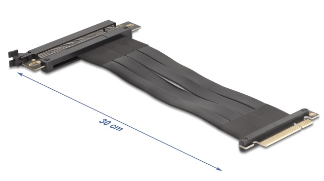 Tato karta PCI Express Riser značky Delock se používá k připojení karty PCI Express x16. Ohebný kabel umožňuje prostorově úspornou instalaci do skříně počítače.