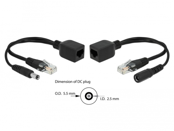 Delock Sada pasivního adaptéru PoE RJ45 DC 5,5 x 2,5 mm