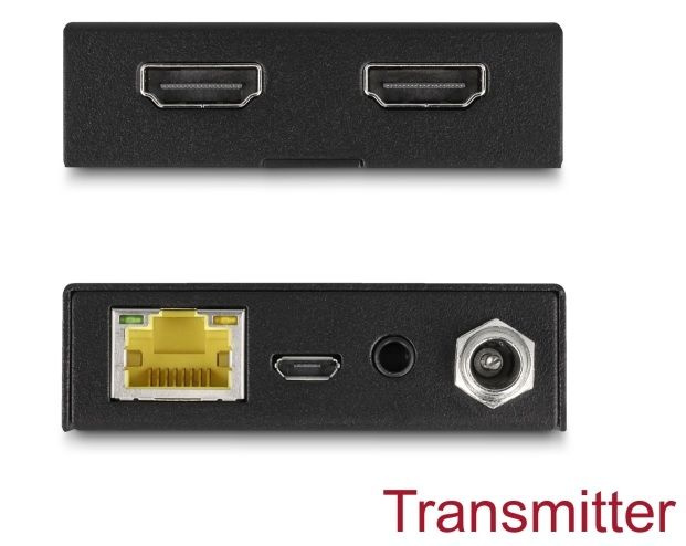 Vysílač má výstupní smyčku HDMI, takže signál lze kaskádně přenášet na další prodlužovač nebo monitor.