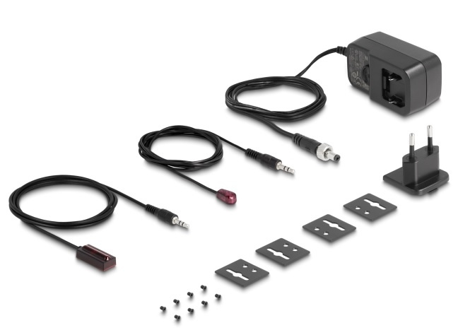 Dodaný infračervený vysílač a přijímač lze připojit k zařízením, aby přenášel infračervený signál po kabelu.